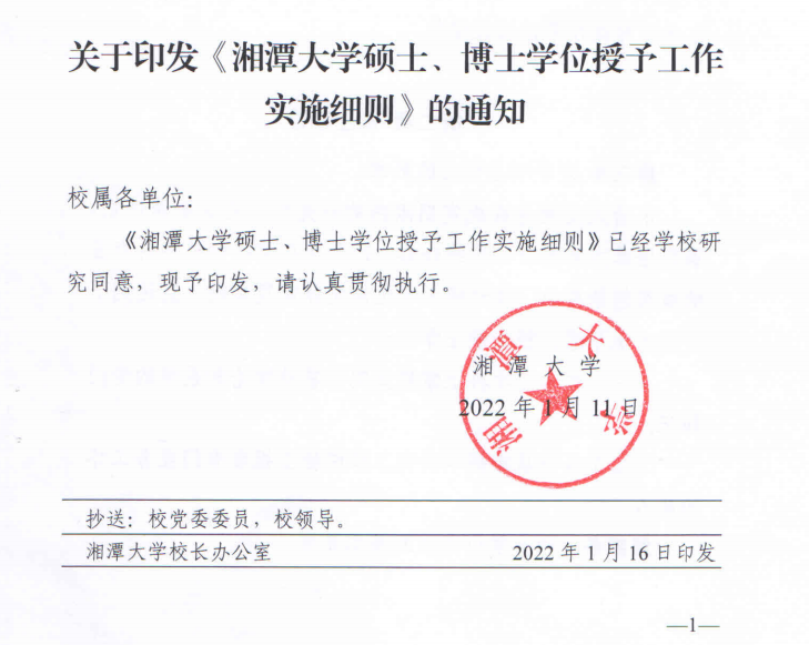 湘潭大學碩士、博士學位授予工作實施細則