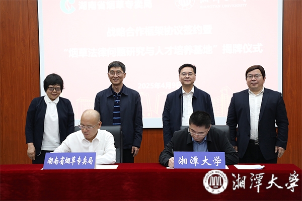 4月9日上午,我校與湖南省煙草專賣局簽署戰(zhàn)略合作框架協(xié)議,“煙草法律問題研究與人才培養(yǎng)基地”揭牌成立。湖南省煙草專賣局(公司)黨組書記、局長、總經(jīng)理周志攀,黨組成員、副局長徐文軍,二級巡視員顏玫,我校校長廖永安,副校長劉金剛等出席。