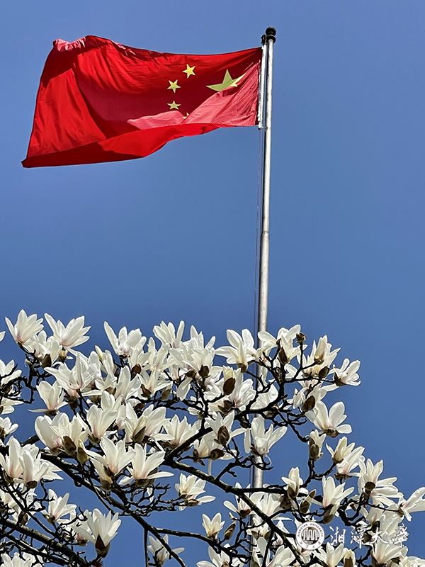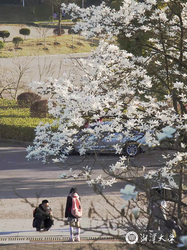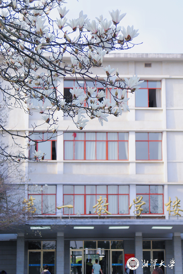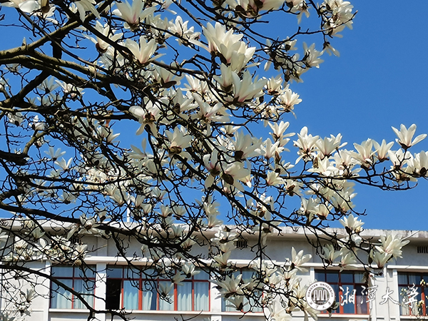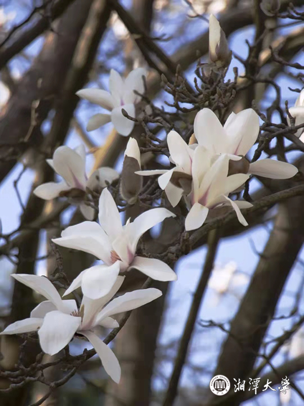 驚蟄時節 ,春風和暖,湘潭大學第一教學樓前,玉蘭報春,花姿綽約,馥郁芬芳,旖旎風光,引人駐足。